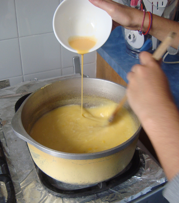 En lo que hierve por última vez la sopa, se bate el huevo. Luego de que la sopa esté suficientemente caliente, se le apaga el fuego y poco a poco, con una como técnica de “hilo”, se le echa el huevo mezclando la sopa a la vez; para que este se cocine bien. Suena más complicado de los que es… pero sí sale.