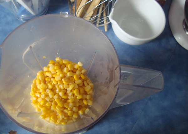 Para mientas, licuar la lata grande de elotitos, con todo y juguito, hasta que se vuelva una crema suave. Esta también se va pa’ la olla… Y se mezcla todo bien bien para luego agregar el agua y consomé al gusto (yo le eché 2 cucharaditas, pero realmente es al gusto. Yo personalmente tengo un lema, un tanto deformado, en cuanto al uso de sal: “mejor que haga falta, a que sobre”.)